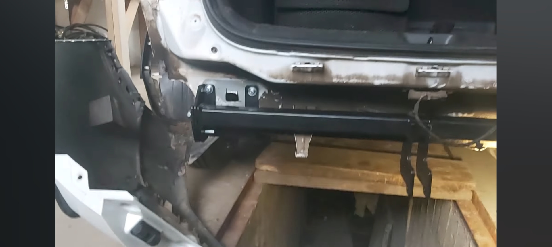 Конечно, самый большой минус в этом, что уже, если вдруг будет удар сзади, то через фаркоп сразу всё уйдет в лонжероны…
